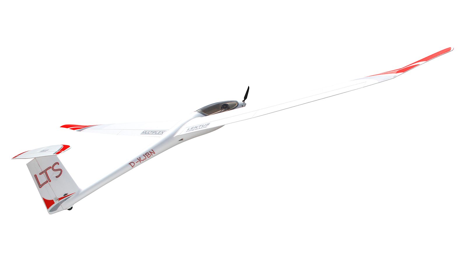 The Lentus is the latest development from MULTIPLEX. The model is designed as a club glider with a focus on thermal and slope soaring. We have implemented a lot of innovative ideas in the Lentus. In the already built RR basic version, the model has a powerful ROXXY brushless motor for 3S-2600 batteries and is equipped as standard with 6 Hitec HS-65HB servos for elevator and rudder, ailerons and flaps. By installing the optionally available retractable landing gear, the model can be self-launched in conjunction with a 4S 2600 battery and an 8x6" propeller. As a further option, it is possible to activate the prepared tow release by installing a Hitec HS-65HB servo, despite the built-in electric motor and undercarriage! This option offers maximum flying fun, making the Lentus the safest model for learning aero tow, as it can be released immediately in a critical situation and the model safely brought back to the starting point with the electric motor. Due to the modern profile design, the model achieves a very large performance spectrum and allows a dynamic flying style. The 4-flap surfaces enable precise landings (butterfly).